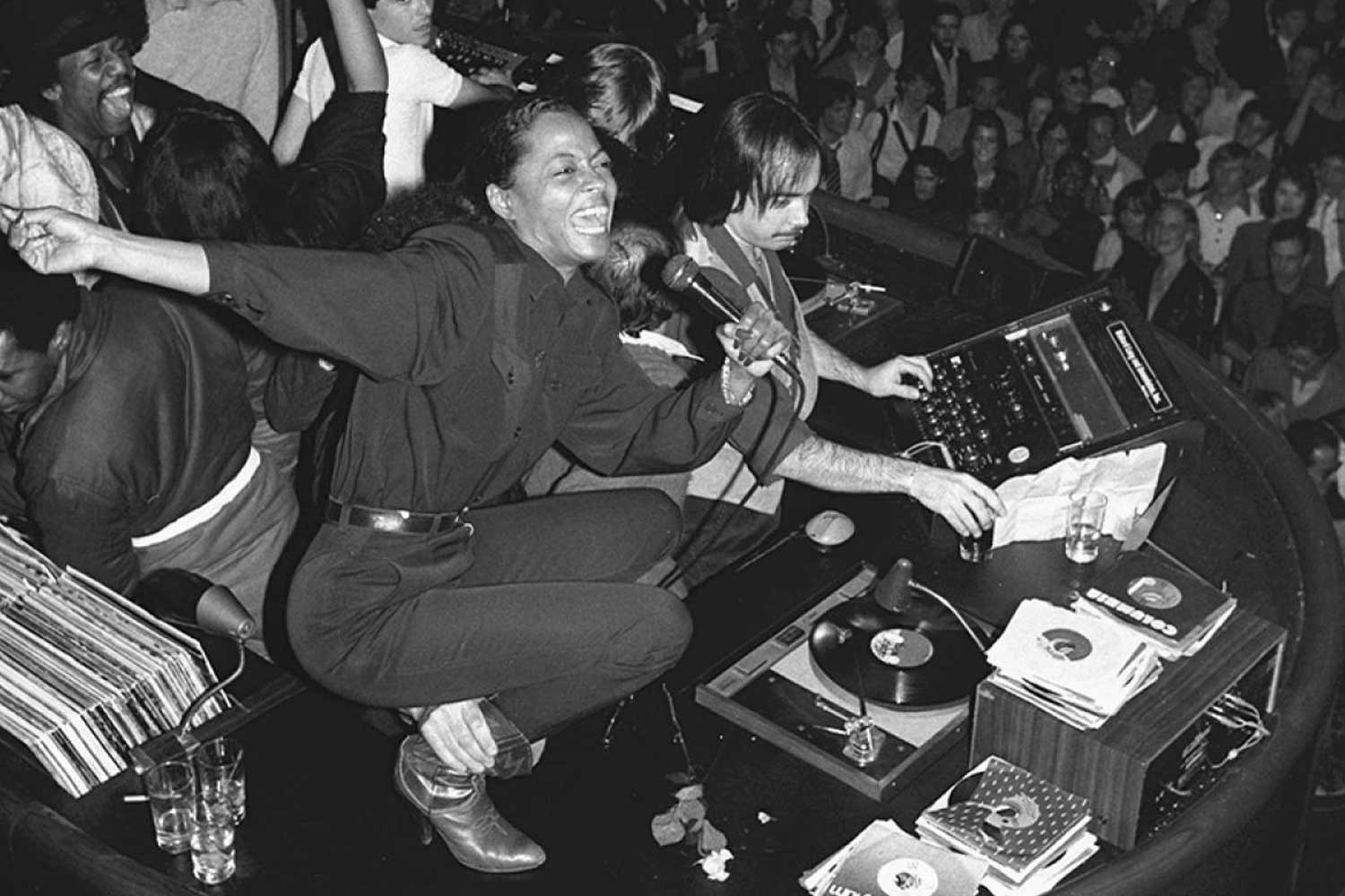 Diana Ross, singing from the DJ booth